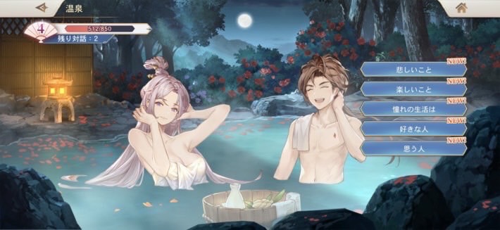 家園と呼ばれるところで好きな英雄と生活やコミュニケーションなどの交流ができる!お気に入りのキャラと一緒にミニゲームをしたり、交流を深めていくと一緒に温泉に入ることができるぞ!温泉に入る時にはキャラの衣装やイラストも変化します。また、1部の英雄は主人公に告白するイラストも実装されており、恋愛ゲームのように楽しむこともできます!