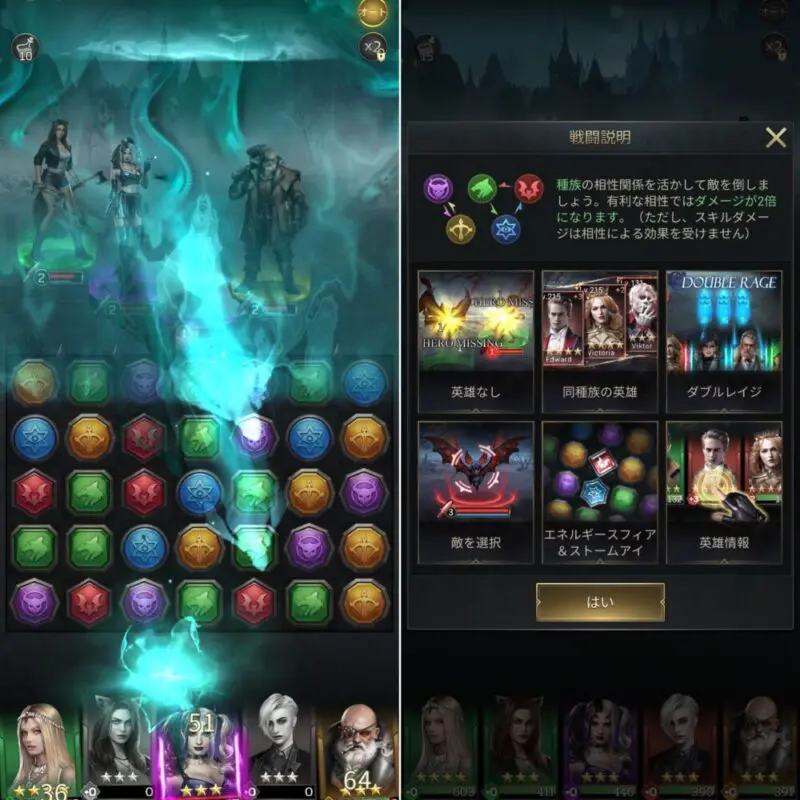 3マッチパズルRPG × 箱庭開拓ゲームという変わった感じのゲーム性を楽しみたいかたにはお勧めのゲームとなっております!!!!