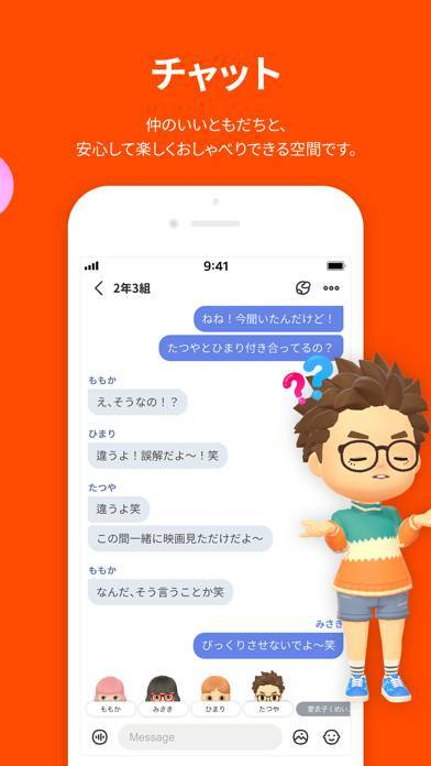 カワイイものが好きな方とかにいちばんお勧めしたいのが、アバター作成です。顔のパーツを組み合わせてリアルの自分自身を投影したり、なりたい理想の自分を思い描いたりと、自由に表現することが可能です。それにスタジオというものがありカスタマイズをする機能です。顔の輪郭や髪型、目の形・色から、ほくろ・そばかすまで含めた細かなデザインはもちろん、洋服、スニーカー、帽子やピアス、バッグまで自由に変えることができ、他の人とは被らないオリジナリティ溢れるアバターの作成が可能です。自分好みのアバターを作り友達と楽しみましょう!!