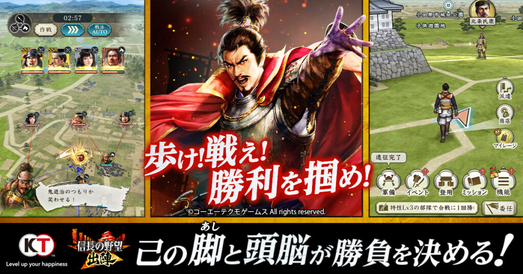 歩いて集めた資源を使い国力を強化し、 育成した武将を使いこなし合戦で勝利を目指そう。より多く歩いたものが強くなることができる!
