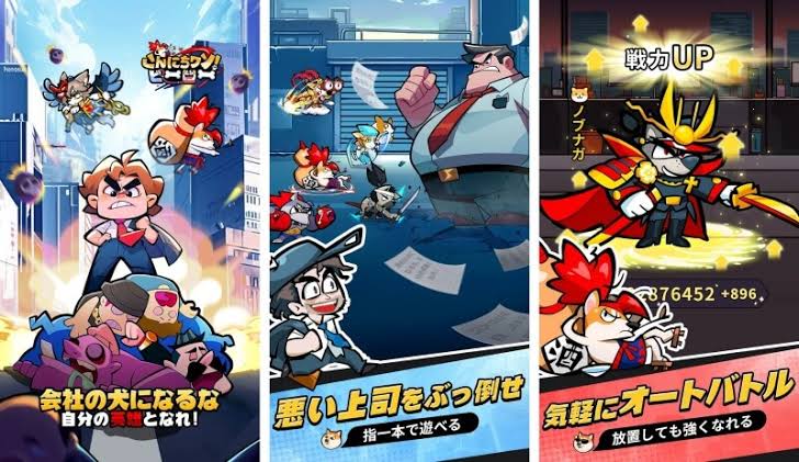 本作は犬神の力を借りて上司をぶっ倒す放置系育成RPG。 キャッチコピーが「社会の犬になるな!」とか言ってる思想が強そうなゲームなのですが、システム自体は定番の遊びやすい放置ゲームです。 思想は無いが尖りまくった主人公や世界観のカオス具合がある意味面白い!