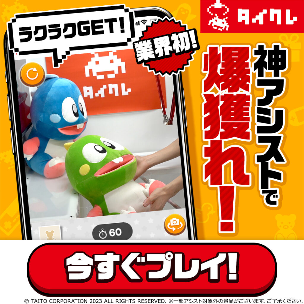 タイクレでは、常時3000種類以上の景品を取り揃えており、業界最大級の景品数を保有しています。また、実際のスタッフさんが景品を獲れやすい位置に移動してくれる『アシスト機能』や、新規登録者限定のトレトレ台など、初心者に優しいサービスも充実しています。初めてオンラインでクレーンゲームをプレイする方にもおすすめのアプリです。