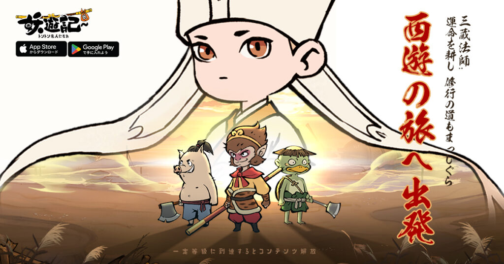 「妖遊記トントン名人になれ」は、可愛らしい最遊記のキャラクタ達が登場するRPGゲームです!木をトントン叩いて落ちてきたアイテムを集めることでキャラクターを強化することができます。クエストやミッションをクリアすることによってどんどん強くなることが出来ます!