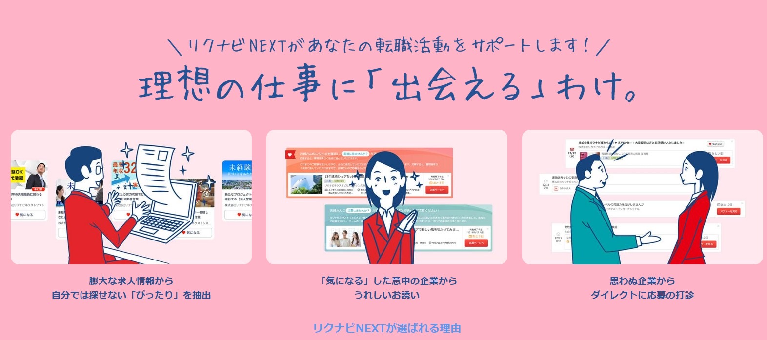 リクナビNEXTには、職務経歴や転職希望条件などを登録しておくと、あなたに興味を持った求人企業や転職エージェントから直接オファーが届くスカウトサービスもあります。登録するだけであなたに合った求人のお知らせが届くかもしれません。