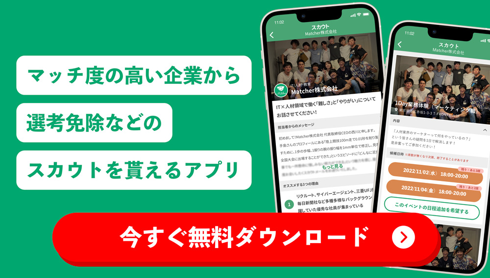 Matcherとは、大学関係なくOB・OG訪問ができる国内最大級の就活相談アプリです。